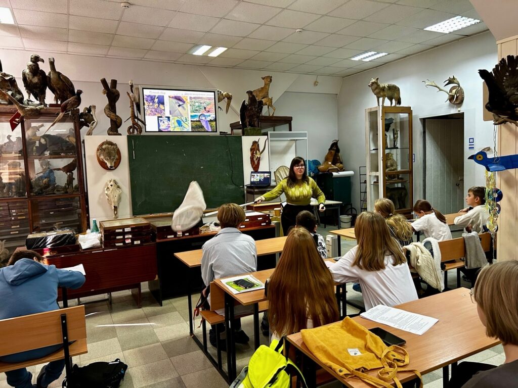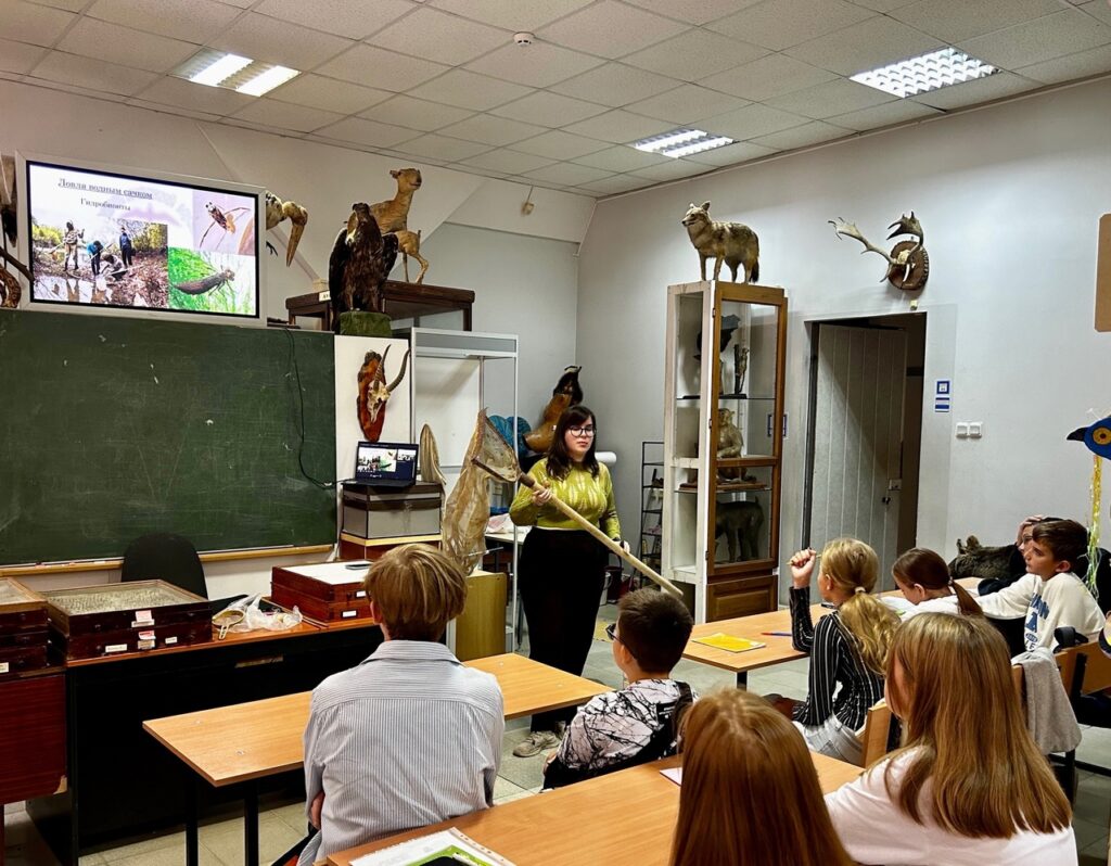 6 октября под руководством магистрантки 1-го курса АБиБ ЮФУ Кирюшкиной Ольги Игоревны состоялось первое в новом учебном году занятие школы «Юный биолог». После вступительного слова Елены Андреевны Богаевой, обучающиеся прослушали лекцию о том, что из себя представляют зоологические экскурсии. Ребятам подробно рассказали, что нужно, чтобы экскурсия состоялась, как правильно поставить цель, какая необходима экипировка. Отдельно остановились на методах исследования беспозвоночных животных, рассмотрели используемое оборудование. Обучающимся показали видеоматериалы со студенческих экскурсий в степях и горах, сопровождающиеся интересными и таинственными историями. В конце занятия провели тест-викторину по усвоенному материалу.