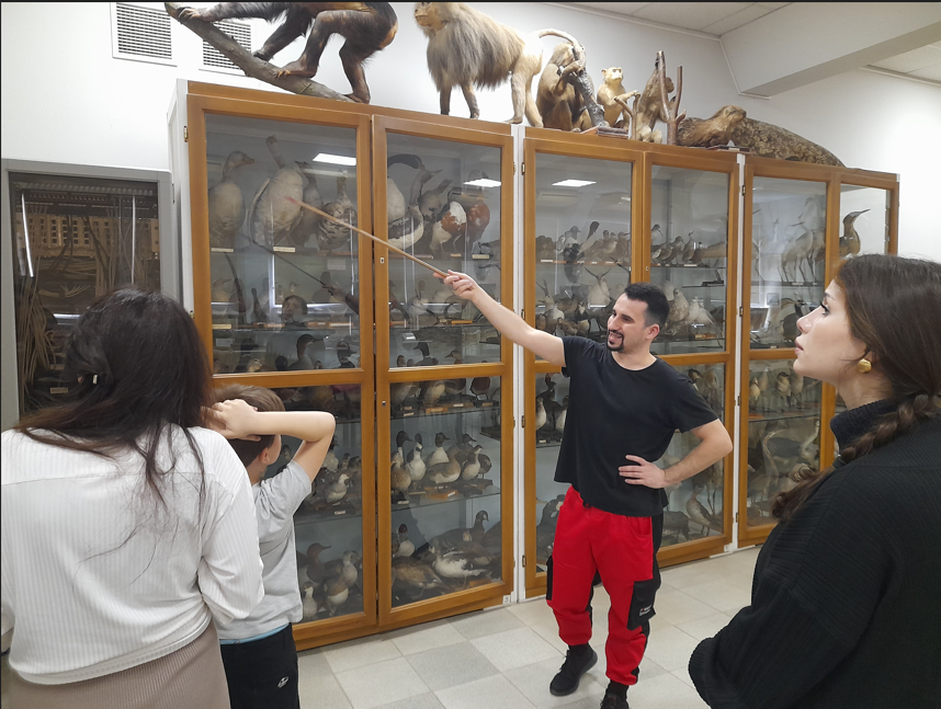Четвёртого апреля в Зоологическом музее ЮФУ под руководством ст. преподавателя кафедры зоологии Романа Викторовича Романчука состоялась экскурсия для обучающихся школы развития «Достояние» из г. Краснодара. Центральной темой мероприятия стали китопарнокопытные. Не удивительно, ведь тема интересная и в чём-то даже провокационная. Вопросы современной систематики животного мира становятся всё более популярны среди школьников. Вот и сегодня встал вопрос о том, когда все новые (и порой очень неожиданные) сведения перекочуют из серьёзной научной периодики в школьные учебники. Экскурсия, плавно перешедшая в обсуждение и дискуссию, вызвала живой интерес гостей Музея. Некоторые из них сегодня наверняка перелистают учебник биологии за 7 класс и посетят сайт Академии.