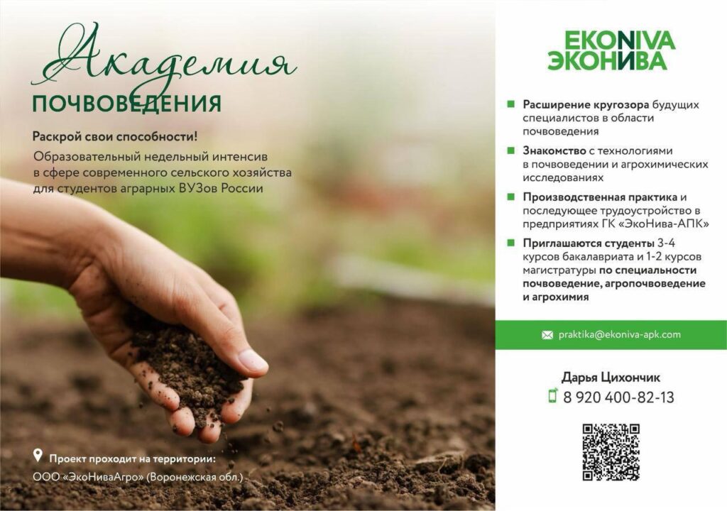 Приглашаем студентов Вашего ВУЗа принять участие в образовательном проекте «Осенняя Академия 2025 Почвоведения» — всероссийский проект по современным технологиям в разных сферах сельского хозяйства, применяемых в ООО «ЭкоНива-АПК Холдинг», который является одним ведущих аграрных холдингов России, а также одним из крупнейших производителей молока в России и Европе.