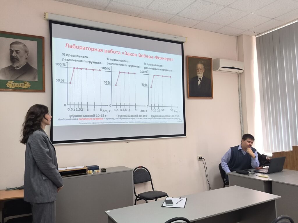 Преподаватель кафедры физиологии Хатламаджиян Вартерес Радиевич провел познавательную лекцию на тему «Соматосенсорная система. Мышечные и болевые рецепторы». Далее ребята выполнили лабораторную работу «Закон Вебера-Фехнера». Её результатом стали сводная таблица результатов и общий график!