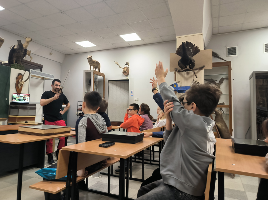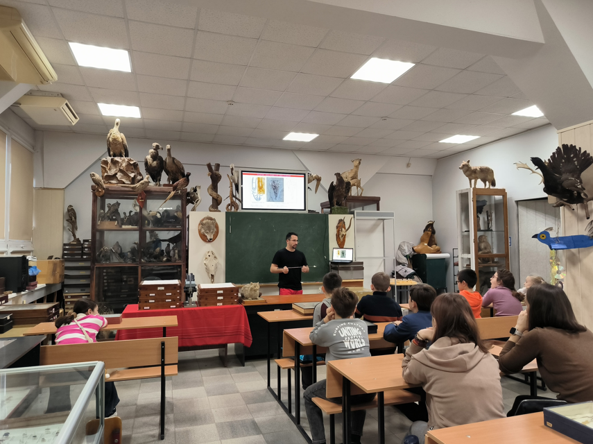 30 ноября Зоологический музей ЮФУ посетили ребята, обучающиеся по программе внеурочной деятельности «Я – исследователь». Старший преподаватель кафедры зоологии АБиМ Роман Викторович Романчук прочитал им лекцию на тему «Насекомые – самый многочисленный класс животных на планете». В дополнение к лекционному материалу юным слушателям была предоставлена возможность ознакомиться с небольшой частью нашей энтомологической коллекции. И в качестве финальной части мероприятия была проведена экскурсия в свободной форме.